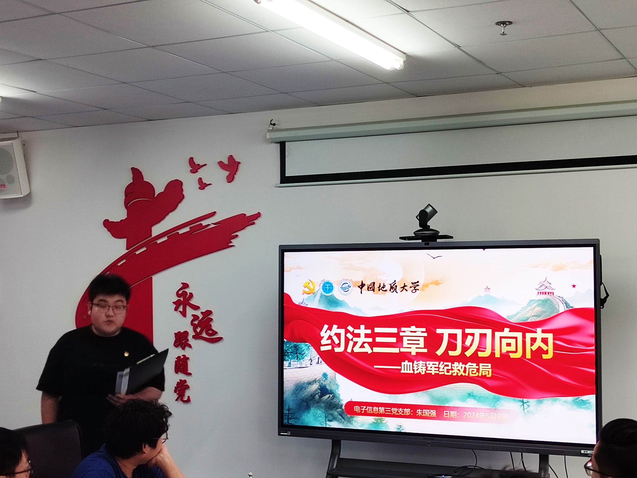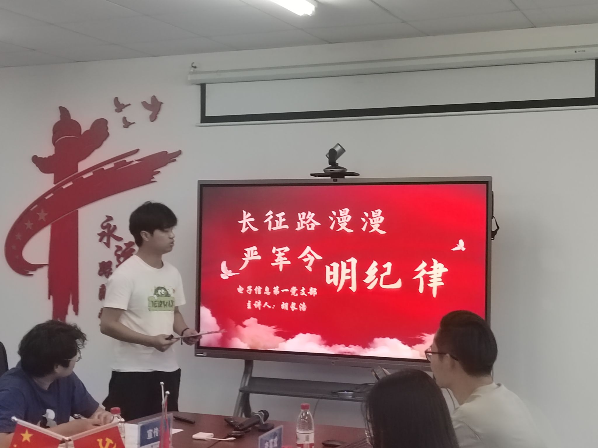 电子信息第三党支部朱国强讲述刘邓大军的严明军纪。本科生软工第一党支部彭胤伦以加思来提·麻合苏提同志的故事体现出一位全面从严治党的忠诚卫士形象。本科生大数据党支部李浩然深情地讲述了罗荣桓的故事,以这位最守纪律的党员故事宣扬遵守纪律、实事求是的作风。