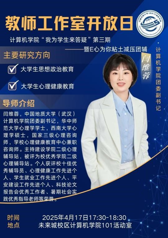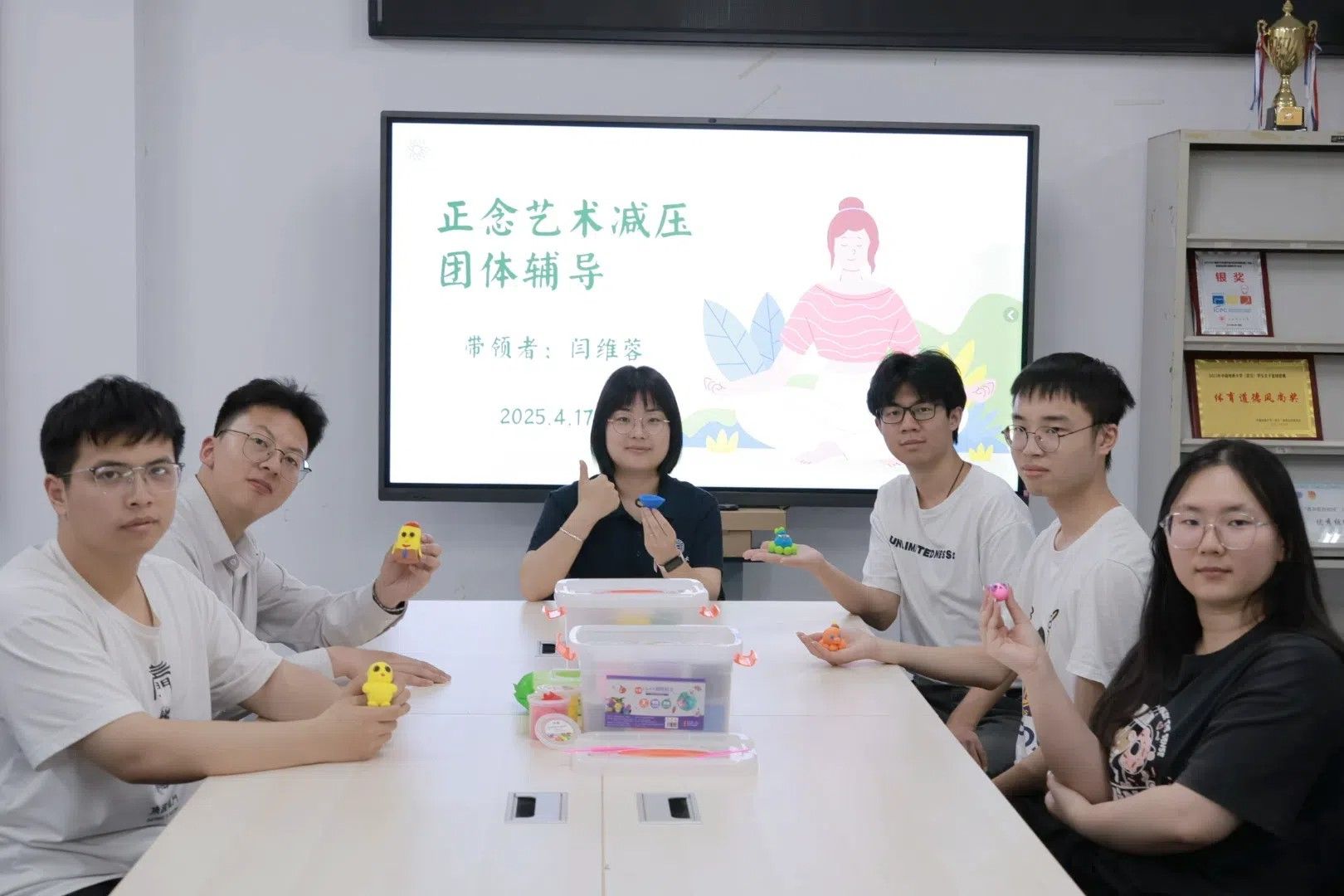2025年4月17日下午,成人av “计科师生办实事,我为学生来答疑”教师工作室开放日活动在未来城校区成人av 101活动室顺利开展。本期活动以“正念艺术减压”为主题,特邀成人av 团委副书记闫维蓉老师担任主讲嘉宾,党建辅导员谭文博老师及学生代表共同参与。活动通过“理论讲解+沉浸体验+艺术创作”的多元形式,为同学们打造了一场别开生面的心灵SPA。