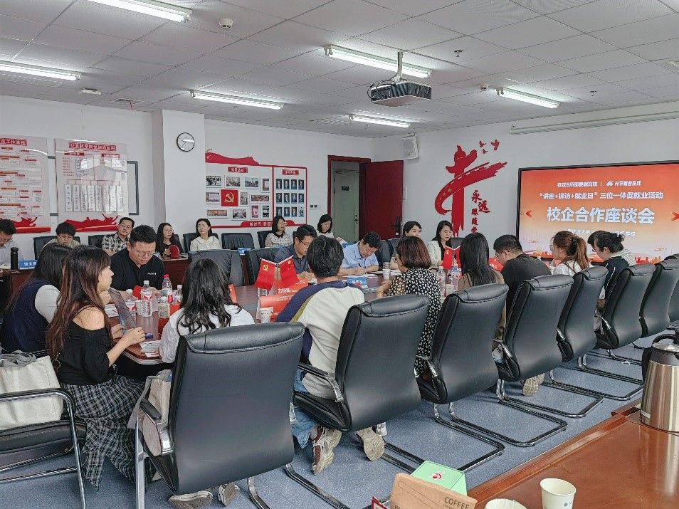 学院党委副书记林小艳介绍学院基本情况和在校生情况,并以“三个协同”系统介绍了学院坚持“产-学-研”结合的育人实践。一是资源协同,依托校企合作开展学科竞赛等,成功获批教育部就业育人优秀案例;二是实践协同,与头部企业构建联合培养基地,设立企业助学金助力实习实践;三是党建协同,建立“党建+就业”融合的党建共建机制,创新开展主题党日活动赋能技术攻坚。