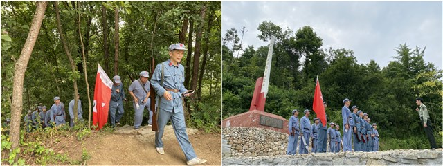 实践教育的第一个环节是重走长征路。山路崎岖,讲解员为同志们讲解了红二十五军简史,介绍了从红二十五军走出来的97位开国将军生平及事迹。途中,同志们还参观了长征十大著名战役独树镇战斗纪念碑,并亲身体验了牛背脊战场和袁家沟口战场。