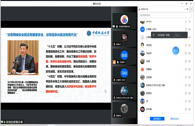 (通讯员:郭晓兰)2022年4月28日,成人av 与信息化工作办公室联合举行党委理论学习中心组主题联学活动,深入学习领会习近平总书记关于数字经济、网络安全和信息化工作重要讲话精神,围绕校室网络安全和信息化建设合作进行了研讨。成人av 党委理论学习中心组成员、学校信息化工作办公室理论学习中心组成员,成人av 信息安全系主要负责人参加会议,成人av 党委书记李国昌主持会议。