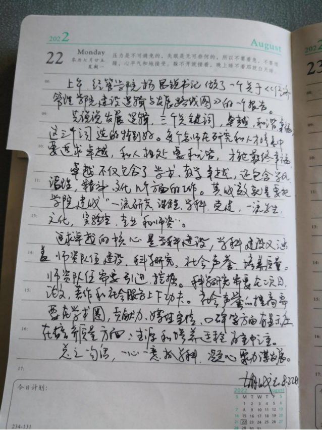 第一阶段,集中培训阶段。8月22-24日,学院党委安排了七场集中学习,其中党建及党风廉政建设四讲,学科建设、课程思政、文化建设各一讲;培训采取线上线下相结合的方式开展,其中线下授课两场、线上授课两场和集中学习网课课件三场。邀请校内领导和专家2人,校外专家、校友2人,中国教育干部网络学院资源库专家3人。