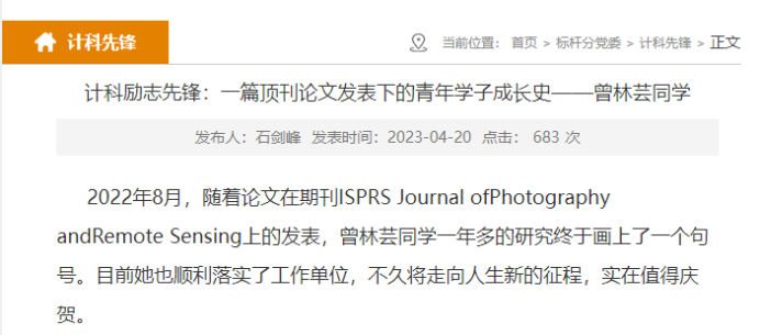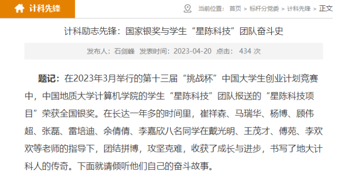 在学院官网对优秀学生和优秀团队进行宣传
