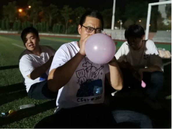 5月19日张志庭老师参与空信专业趣味运动会“踩气球”准备工作