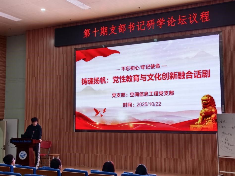 首先是创新项目结题汇报。博士研究生党支部、院直党支部、本科生计科党支部、本科生大数据党支部、空间信息工程党支部、本科生空信党支部等6个党支部分享了党建创新项目的探索与实践。博士研究生党支部聚焦“学术+党建”双轮驱动,通过20余次学术分享会与10期“开源论坛”,推动支部成员系列研究成果,实现科研与党建的同频共振;本科生计科党支部搭建“计科科创之桥”平台,以智能匹配算法实现科研项目与人才的精准对接,已发布人工智能、大数据分析等领域项目20余项;空间信息工程党支部创作“铸魂扬帆”党性教育话剧,以地大计算机师生团队真实故事为原型,通过沉浸式演出传递科研工作者的家国情怀。各支部的创新实践,充分展现了成人av 党建工作“一支部一品牌”的建设成果。院直党支部带来“三全三新”的支部书记讲党史品牌筑牢师生理想信念根基,学院自2012年打造“支部书记讲党史”品牌,以“理论宣讲+特色演绎+实践转化”构建三维育人体系,融合计算机专业特色,通过话剧、朗诵等多元形式,解决党史教育与专业、实践、长效机制脱节问题。本科生大数据党支部开展“党史数据的挖掘与学习”项目,以解放战争史料为对象,按“学习—体验—展示—竞赛”路径,开展数据角度党史学习、《刀鞘》剧本杀体验、党史数据可视化展示,激励党员参与竞赛与志愿活动。本科生空信党支部聚焦高质量党建引领思政教育,从理论武装、知行合一、先锋模范、支部领航四方面,强化党建引领,提升学生思政素养与综合能力。