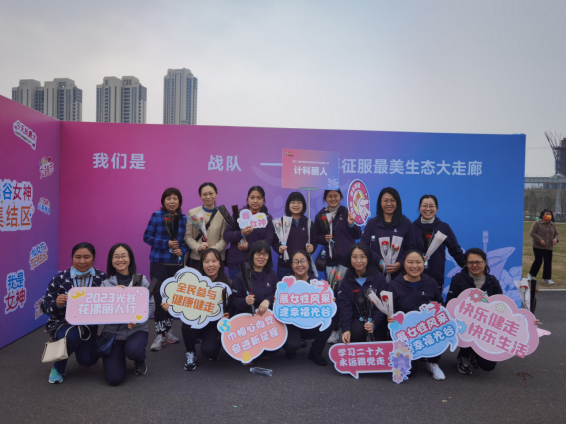 花红柳绿簇春华,计科丽人花漾嘉。为深入学习贯彻党的二十大精神和习近平总书记关于妇女事业和妇女工作的重要指示精神,在第113个国际劳动妇女节来临之际,成人av 工会于3月3日组织学院女职工代表在光谷中央大走廊开展了花漾丽人行健步走活动,以纪念“三八”国际劳动妇女节,倡导健康生活、快乐工作。
