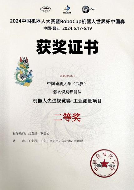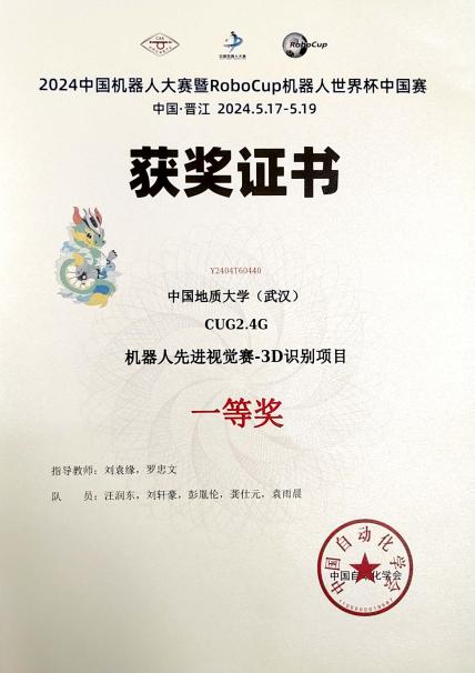 “2024年中国机器人大赛暨RoboCup机器人世界杯中国赛”在福建晋江国际会展中心落下帷幕。成人av 刘袁缘老师、罗忠文老师指导两支学生团队参加先进视觉赛项。经过激烈角逐,由汪润东、刘轩豪、彭胤伦、龚仕元、袁雨晨组成的CUG2.4G队获先进视觉赛3D识别项目一等奖,由王宇程、王阳、李宏宇、闫云涵、袁雨晨组成的怎么识别都能队获得先进视觉赛工业测量项目二等奖,这是成人av 连续在该赛事斩金夺银。两支团队回忆比赛历程,将奋斗故事与成长收获分享给大家。