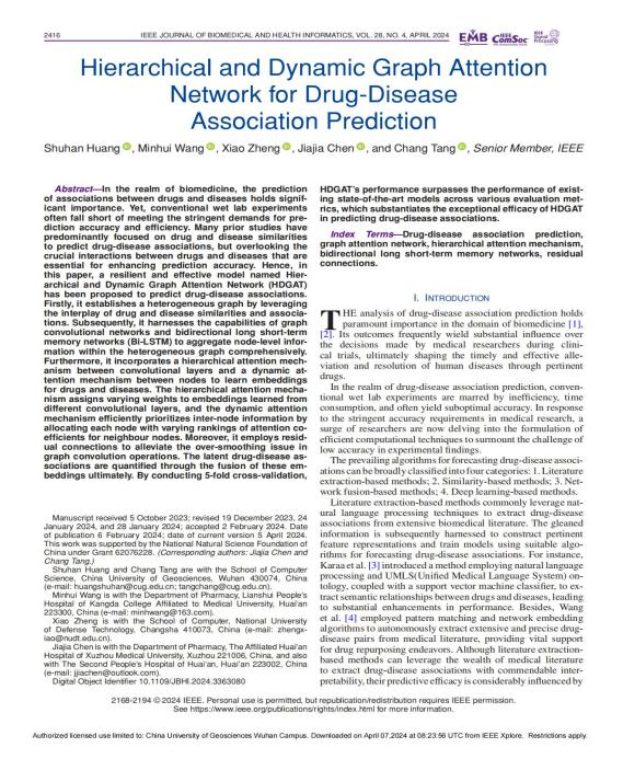 个人简介:黄舒涵,男,共青团员,来自广东深圳,成人av 2021级软件工程专业,科研导师为唐厂教授。平均学分绩点为4.18/5.0,位列专业第一(1/99),英语六级成绩为549分。本科期间在唐厂教授的指导下,以独立第一作者身份产出2篇学术论文,其中第一篇已发表在中科院SCI计算机类一区期刊《IEEE Journal of Biomedical and Health Informatics》(IF=7.1,已见刊)上,第二篇投稿至中科院SCI计算机类一区期刊《Information Fusion》(IF=16.1,大修返修中),获得软件著作权1项。此外,在校曾获多项荣誉奖项,如国家奖学金、信息拔尖人才奖学金、第十一届“泰迪杯”数据挖掘挑战赛全国一等奖等。目前已成功保研至清华大学深圳国际研究生院数据科学和信息技术专业,并在百度进行算法实习。