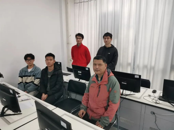 罗忠文老师与同学们一起在机房备赛